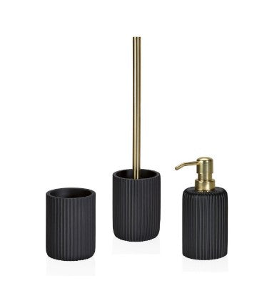 - Material: Vaso portacepillos de dientes en poliresina negra mate con diseño en relieve.