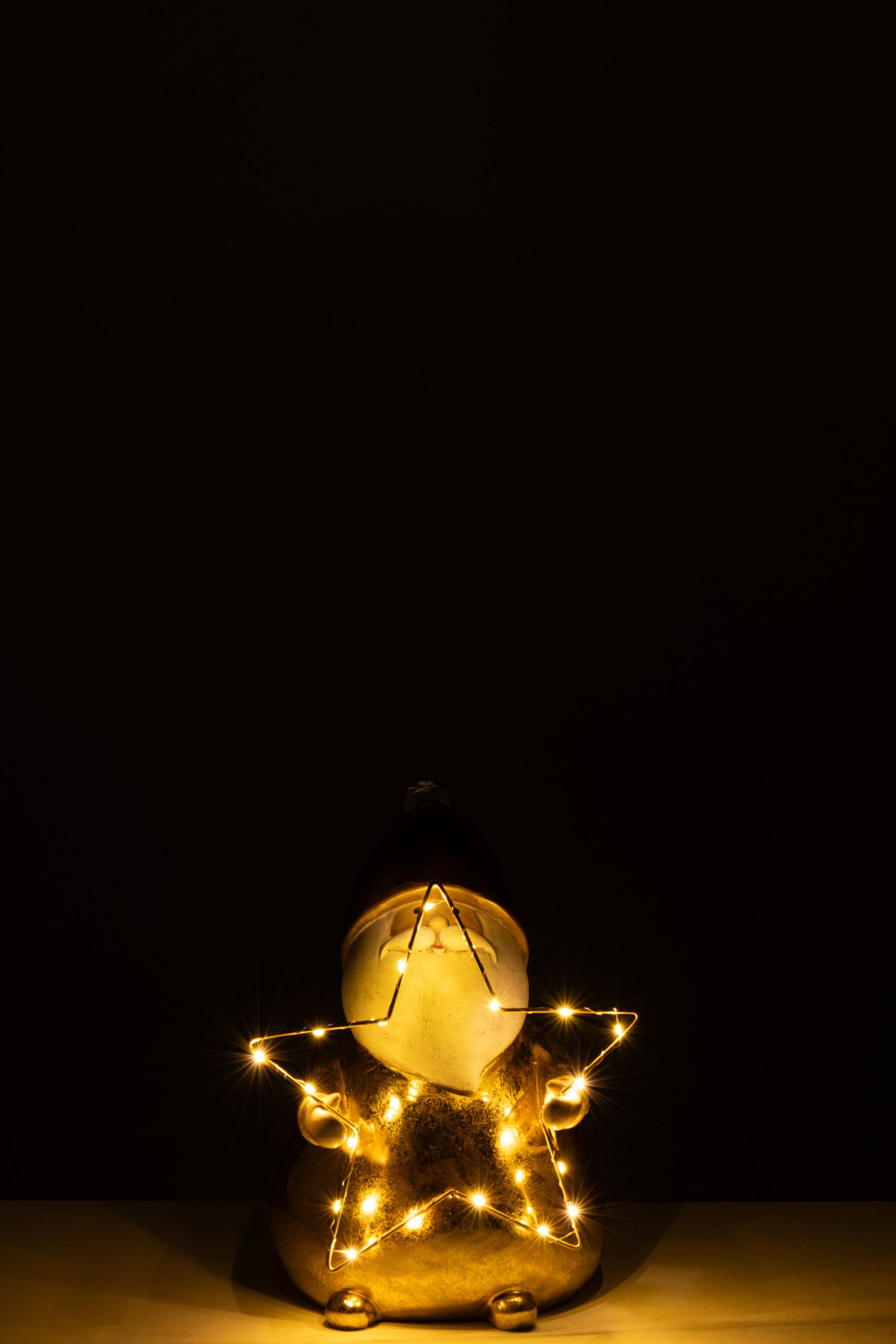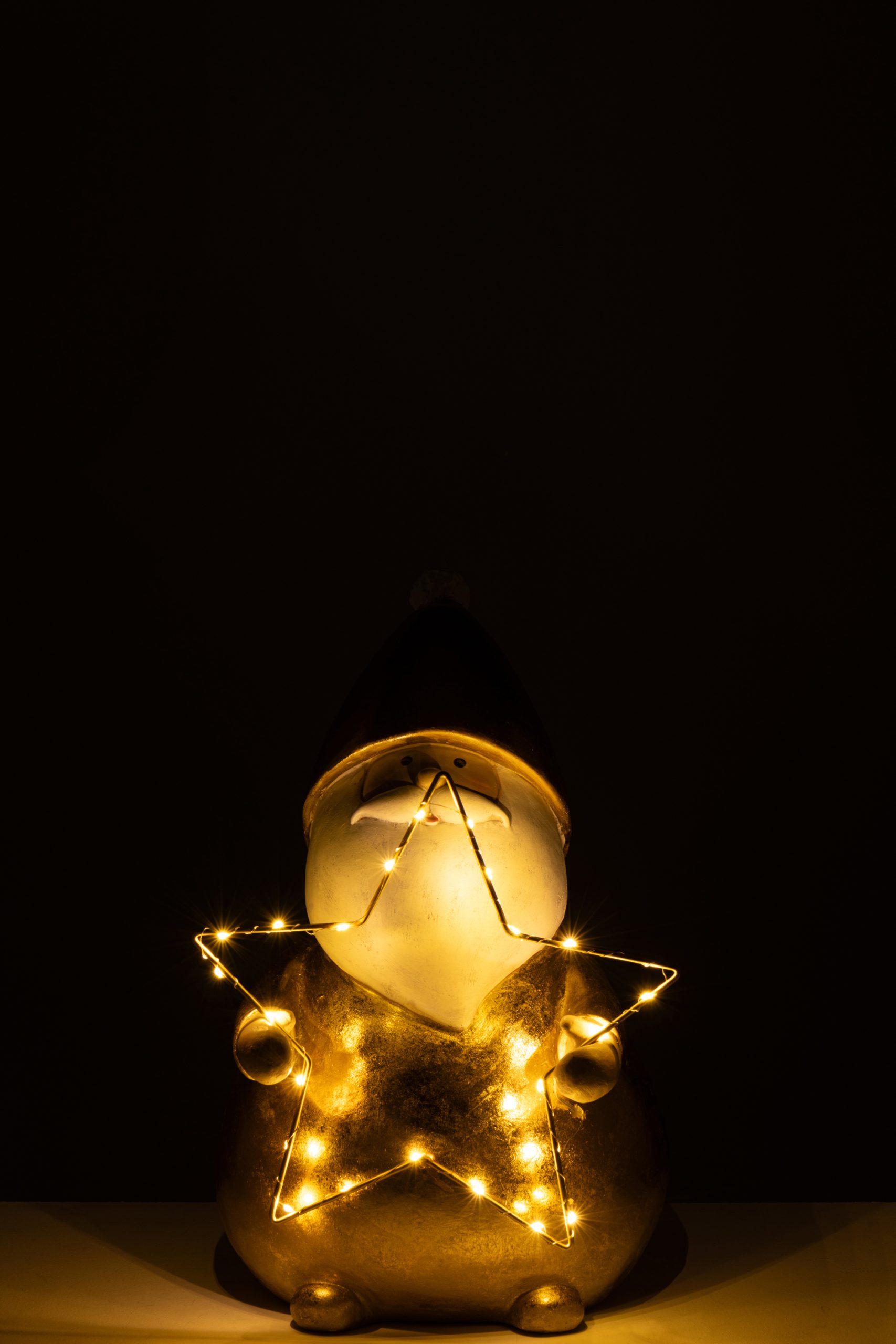 Este Pai Natal redondinho e sorridente segura uma estrela com luzes LED, espalhando brilho e boa disposição pela decoração. Feito com atenção ao detalhe, combina formas suaves e cores tradicionais, trazendo um toque acolhedor e alegre ao ambiente natalício.