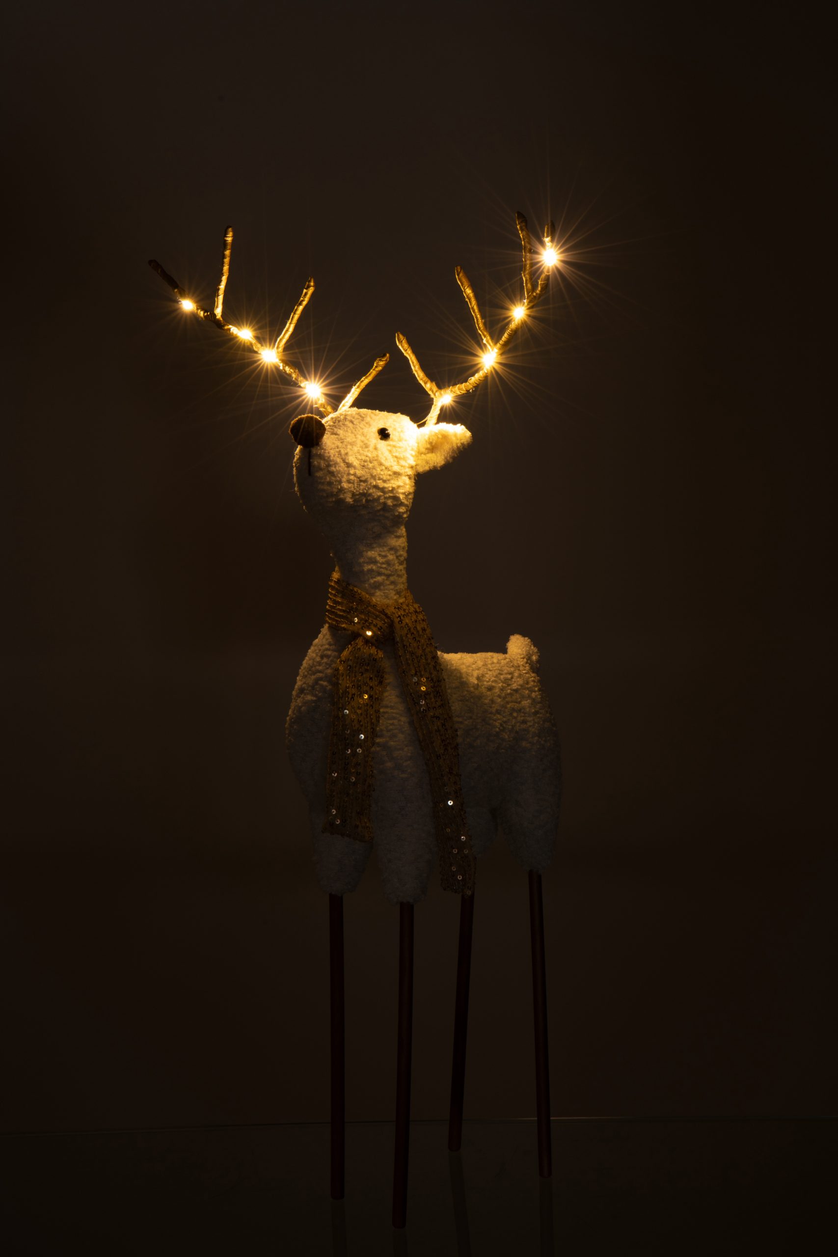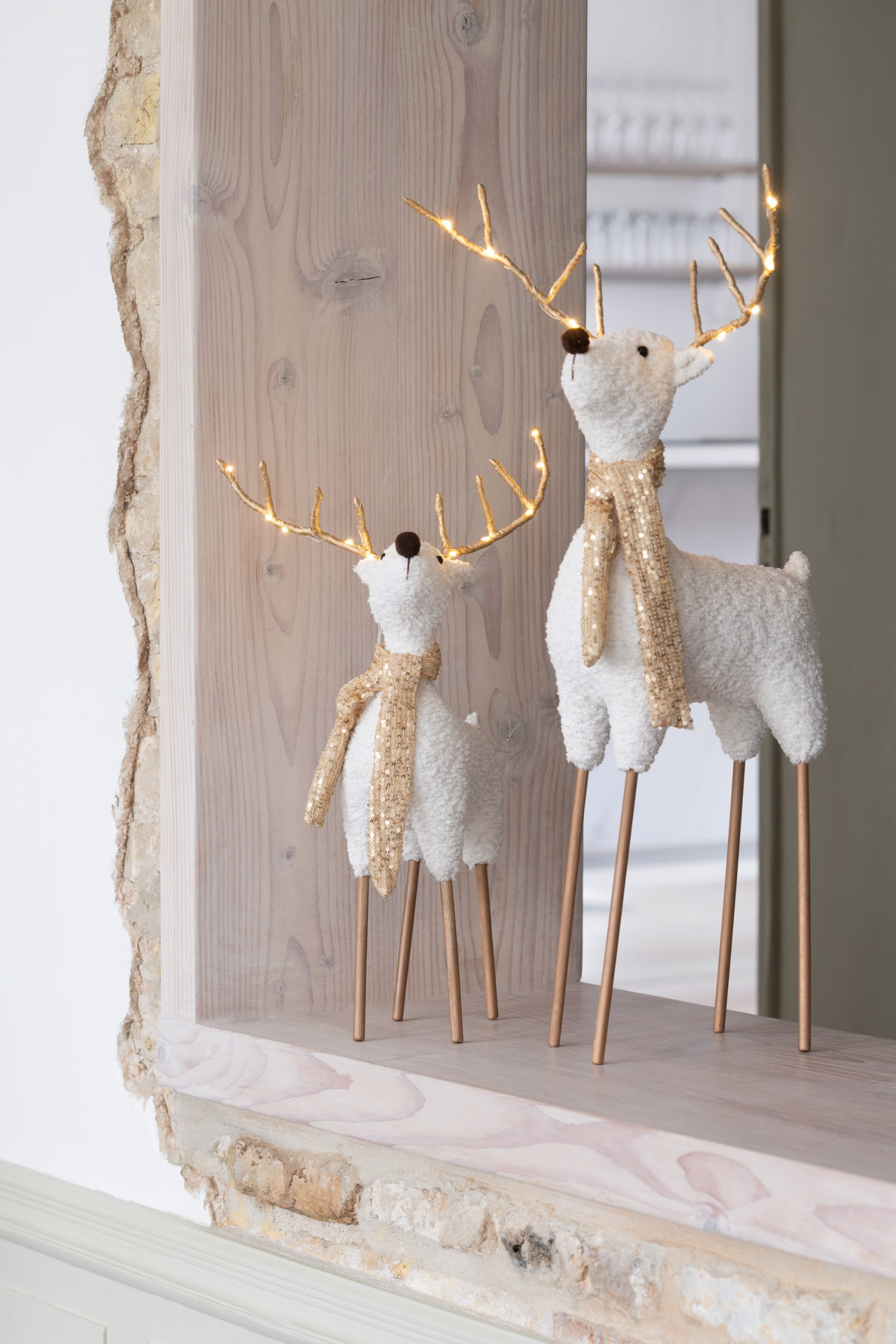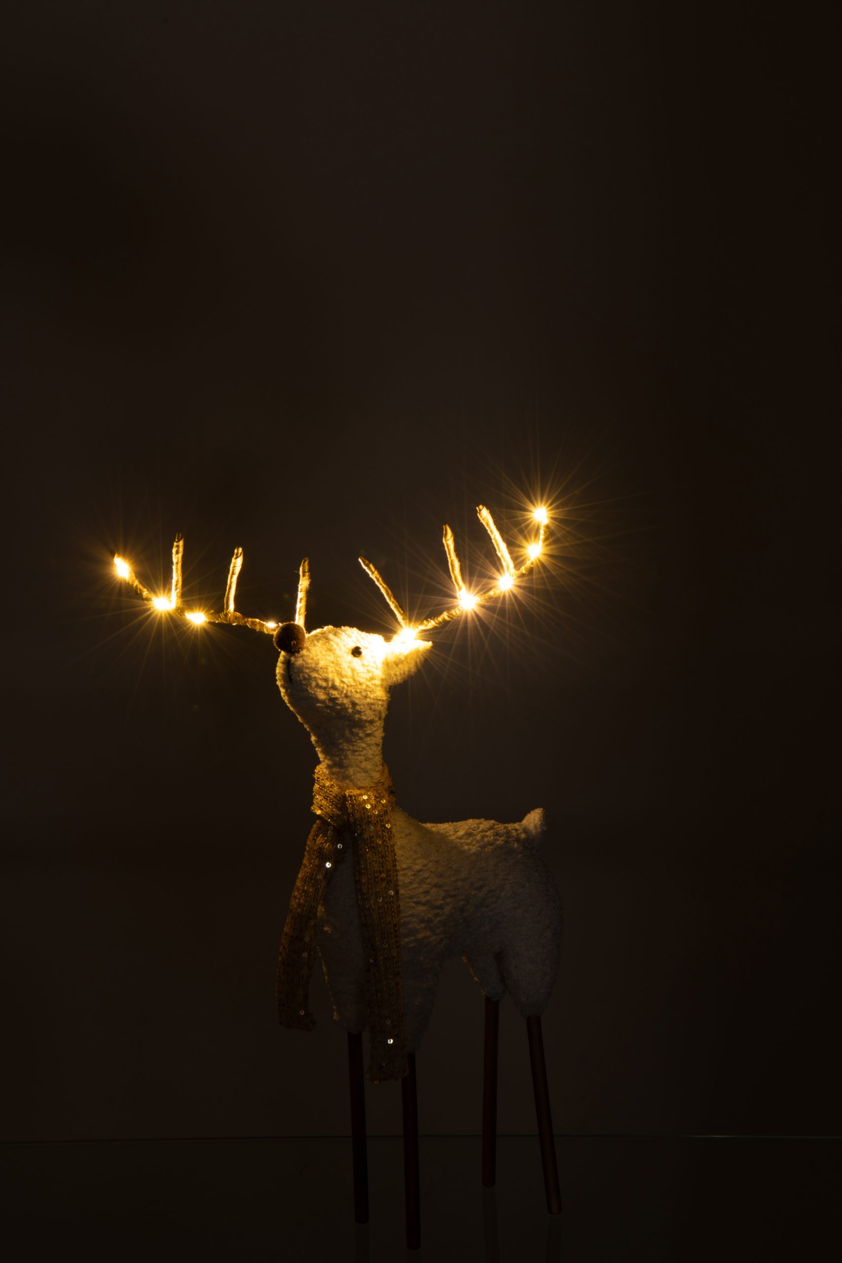 As astes possuem pequenas luzes, tornando estas renas ideais para presépios, composições modernas ou detalhes decorativos, estas renas transmitem espírito festivo de forma clean e harmoniosa, sem sobrecarregar o espaço.